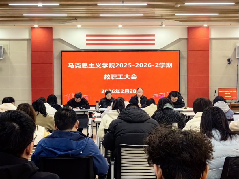 2月28日下午,马克思主义学院在虚拟仿真中心召开期初全体教职工大会。学院党总支副书记、院长陶庭马,副院长张婧及全体教职工参加会议,会议由党总支委员陈健主持。