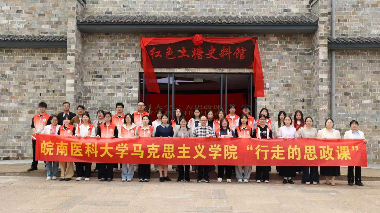 为深入贯彻习近平总书记关于“大思政课”的重要指示精神,打造“校地共建、资源共享、人才共育”的“大思政课”实践育人共同体,4月25日,马克思主义学院组织师生赴南陵县三里镇吕山村红色土塘史料馆,开展“行走的思政课”实践研学活动,并举行“大思政课”实践教学基地挂牌仪式。马克思主义学院党总支书记邹莹,党总支副书记、院长陶庭马,副院长张婧及师生代表,南陵县三里镇党委副书记、镇长方伟华,党委副书记吴杰及镇干部代表、村党总支书记代表参加本次活动。