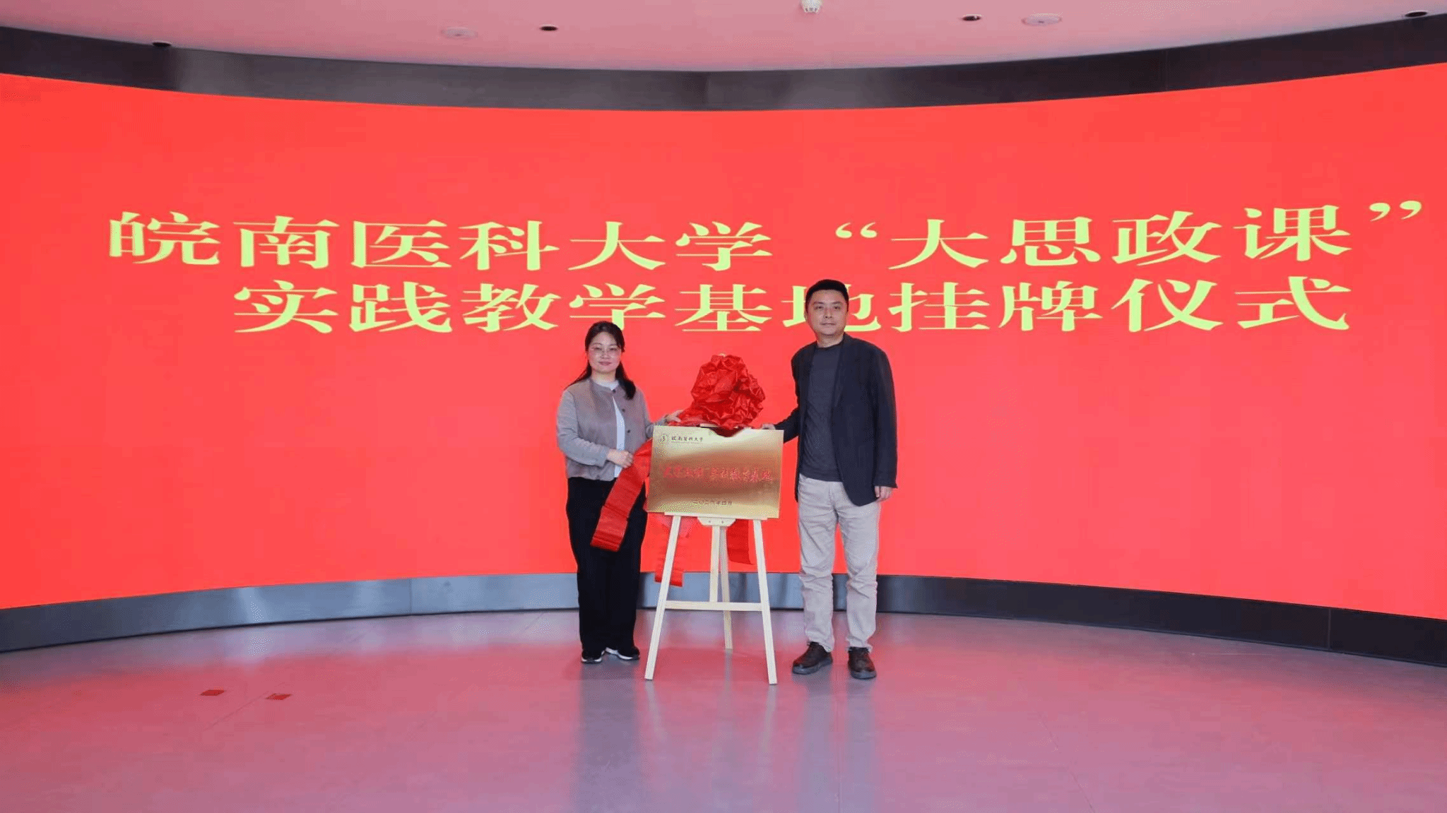 活动开始,方伟华主持召开座谈会,校地双方围绕红色土塘研学基地、精品示范村建设、乡村振兴等主题进行深入交流。陶庭马表示,以“红色土塘、医路同行”为主题,推动学校思政课教学改革创新与地方红色文化资源保护利用深度融合,打造集教学实践、理论研究、志愿服务、文化传承于一体的协同育人平台,服务“大思政课”建设与乡村振兴。邹莹指出,基地建立将推动校地在人才共育、课题共研、文化共享上形成长效机制,让“大思政课”有根有魂,下一步要推动校地共建内容落实落地。座谈会后,邹莹和方伟华为红色土塘史料馆作为学校“大思政课”实践教学基地进行揭牌。