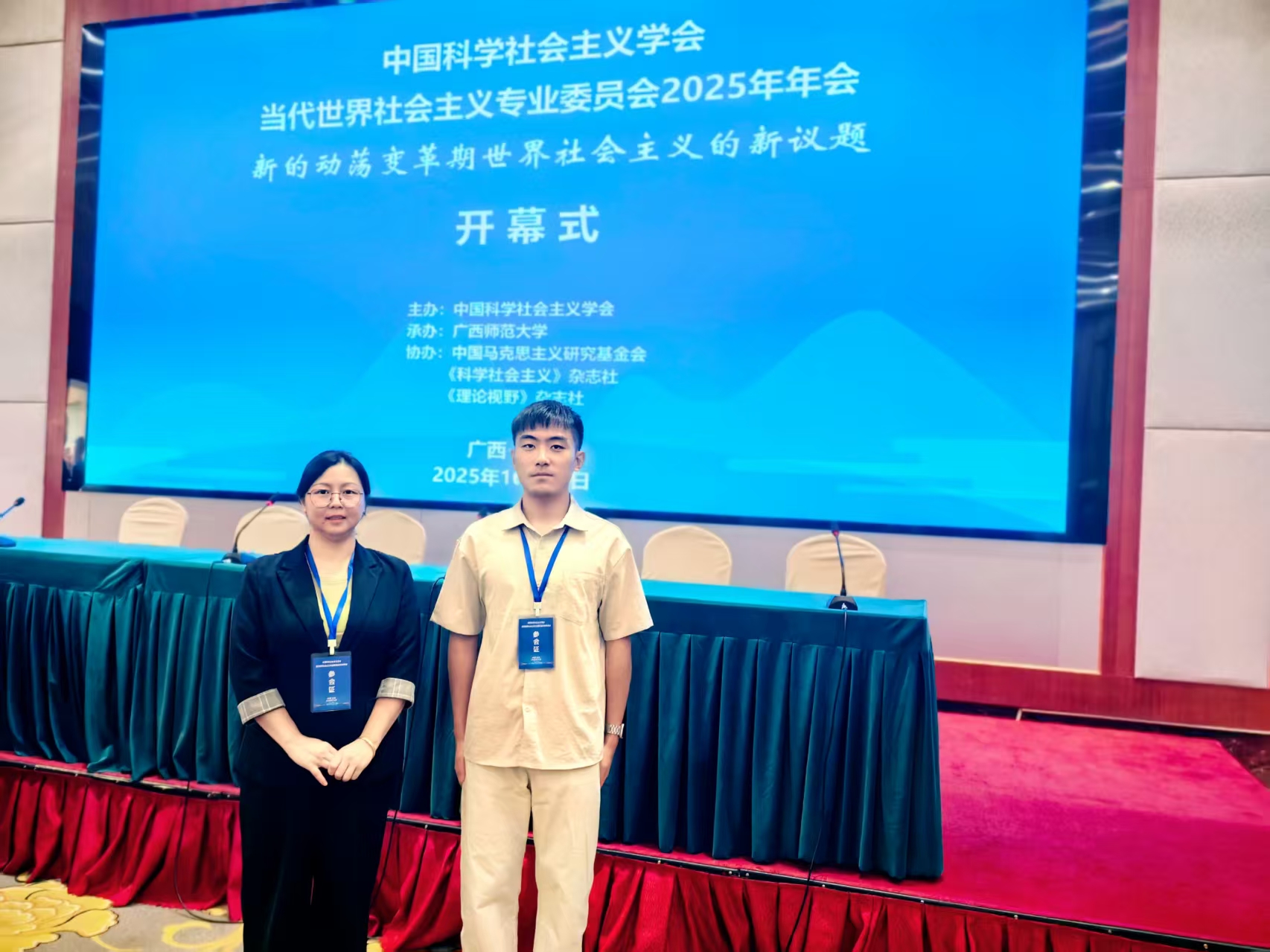 10月18日,由中国科学社会主义学会主办,广西师范大学马克思主义学院承办,中国马克思主义研究基金会、《科学社会主义》杂志社和《理论视野》杂志社协办的“新的动荡变革期世界社会主义的新议题”学术研讨会在桂林举行。来自全国党校(行政学院)、高校、社科院、党政研究机构等近150名代表参会。我院教师郭玉琼、研究生毛自扬以文赴会。